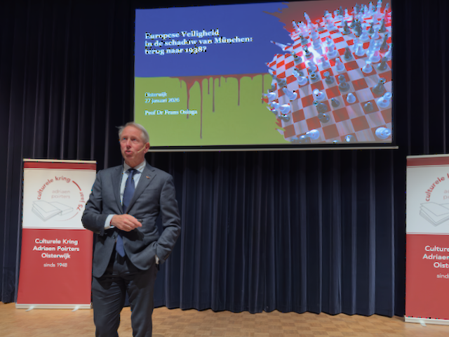 Tegen deze achtergrond plaatste Osinga de Europese veiligheid expliciet “in de schaduw van München”: de huidige situatie vertoont volgens hem verontrustende parallellen met 1938, toen de westerse mogendheden Poetins voorganger Hitler probeerden te beteugelen via appeasement (verzoening). Hij verwees naar recente uitspraken van Europese leiders en analyses uit gezaghebbende tijdschriften, waarin gewezen wordt op de terugkeer van grootmachtpolitiek, het verval van multilaterale instituties en een wereldorde die steeds minder door regels en steeds meer door rauwe macht wordt gestuurd.